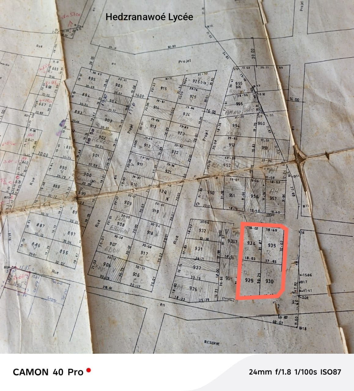 Terrain 4 lots collés avec 3 tampons global ... très bien situés en plein centre ville en angle de rue, non loin du Lycée de hédzranawoé...