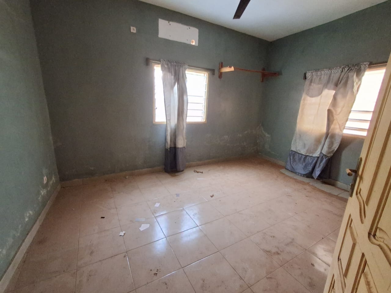 CaisseVilla dallée construite sur terrain 1/4 de lot avec un nouveau tampon OTR en baie vitrée, située dans une rue en face de la station SOMAYAF de Sogbossito à 1.2km environ du goudron et composée de :::