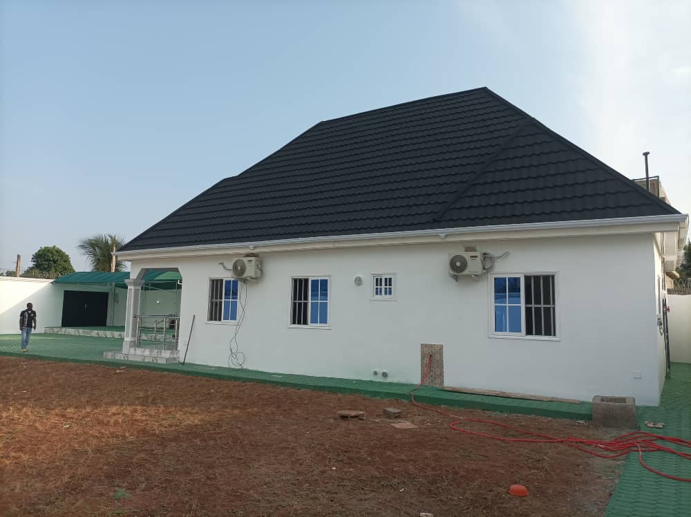 -3 chambres climatisées avec chacune son sanitaire ... un grand salon climatisé ... une salle à manger .. une cuisine Américaine ... un grand jardin ... un garage pour deux voitures ...