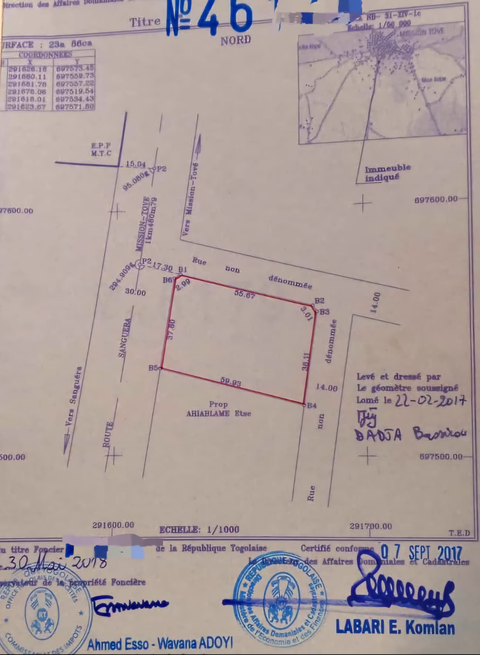 Baguida-AfanoukopéTerrain 4 lots collés avec titre foncier ... situés à Apéssito Avenyaké en Bordure de la grande voie de 30m de kpala-Mission tové en allant vers mission tové à proximité du Bar Auberge 2GL et ouverts sur 3 voies...