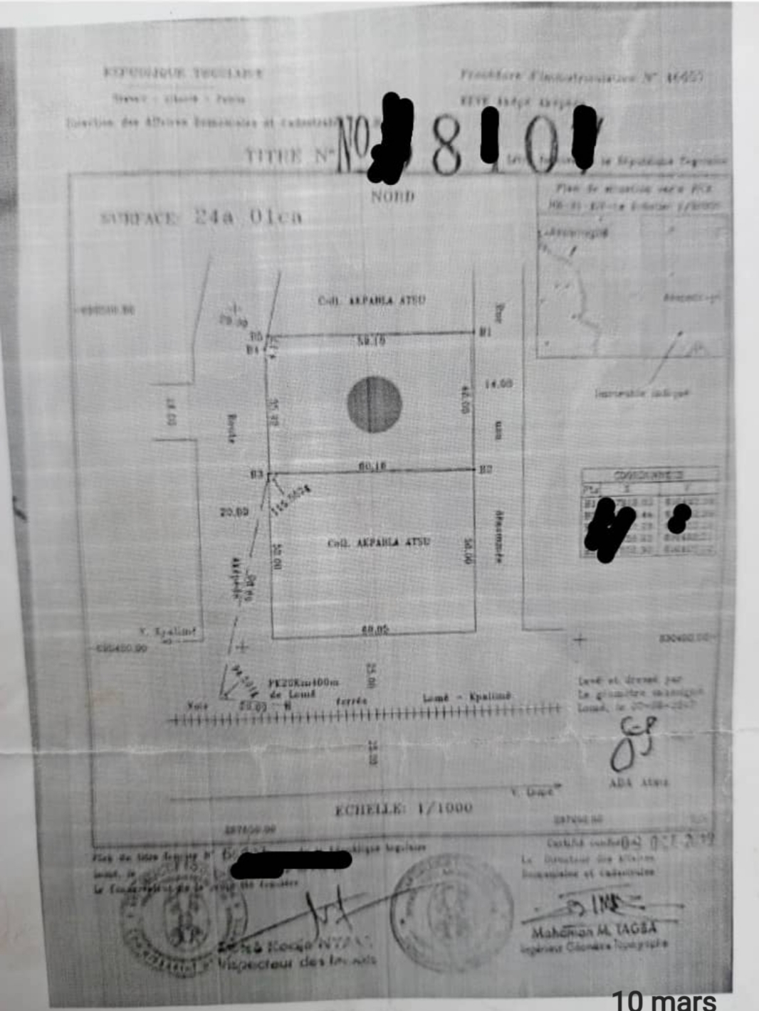 Terrain 4 lots collés cloturés avec titre foncier ... tres bien situés à seulement 90m du goudron Lomé-kpalimé en face de deux voies à Aképédo..