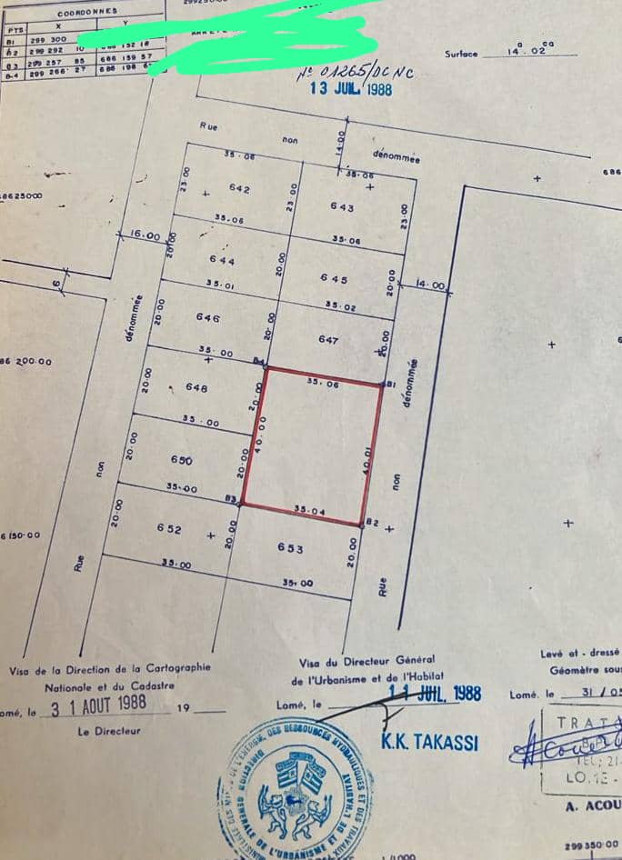 Baguida-AfanoukopéTerrain 1 lot ( soit 525m2 ) avec titre foncier en cours ( niveau réquisition ) à déduire sur une dimension total de 1402m2 avec une construction inachévées de 3 chambres salon avec 2 garages... idéal pour un projet locatif ou résidentiel situé derrière ETRAB à 100m du goudron dans un quartier calme et stratégique ...