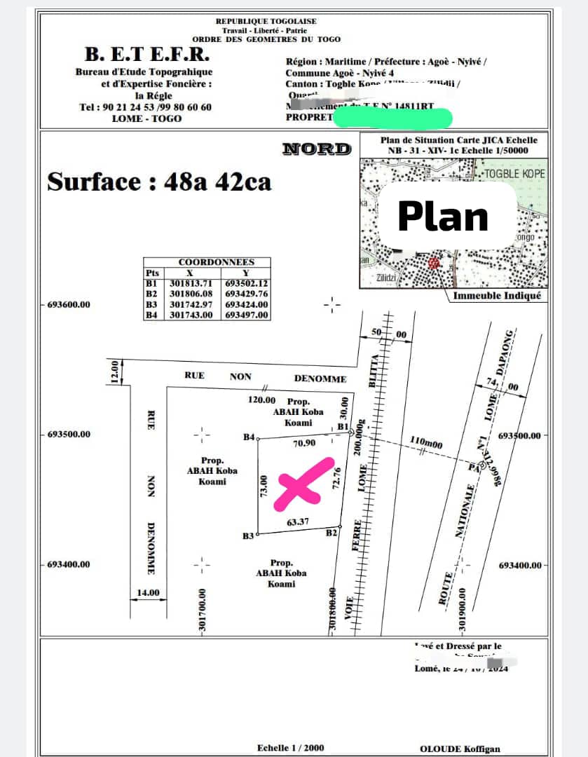 Baguida-AfanoukopéTerrain 8 lots collés ( soit 4842m2 ) avec titre foncier global ... bien situés à peine 70m du goudron de la nationale numéro 1 à Agoè Zongo ...