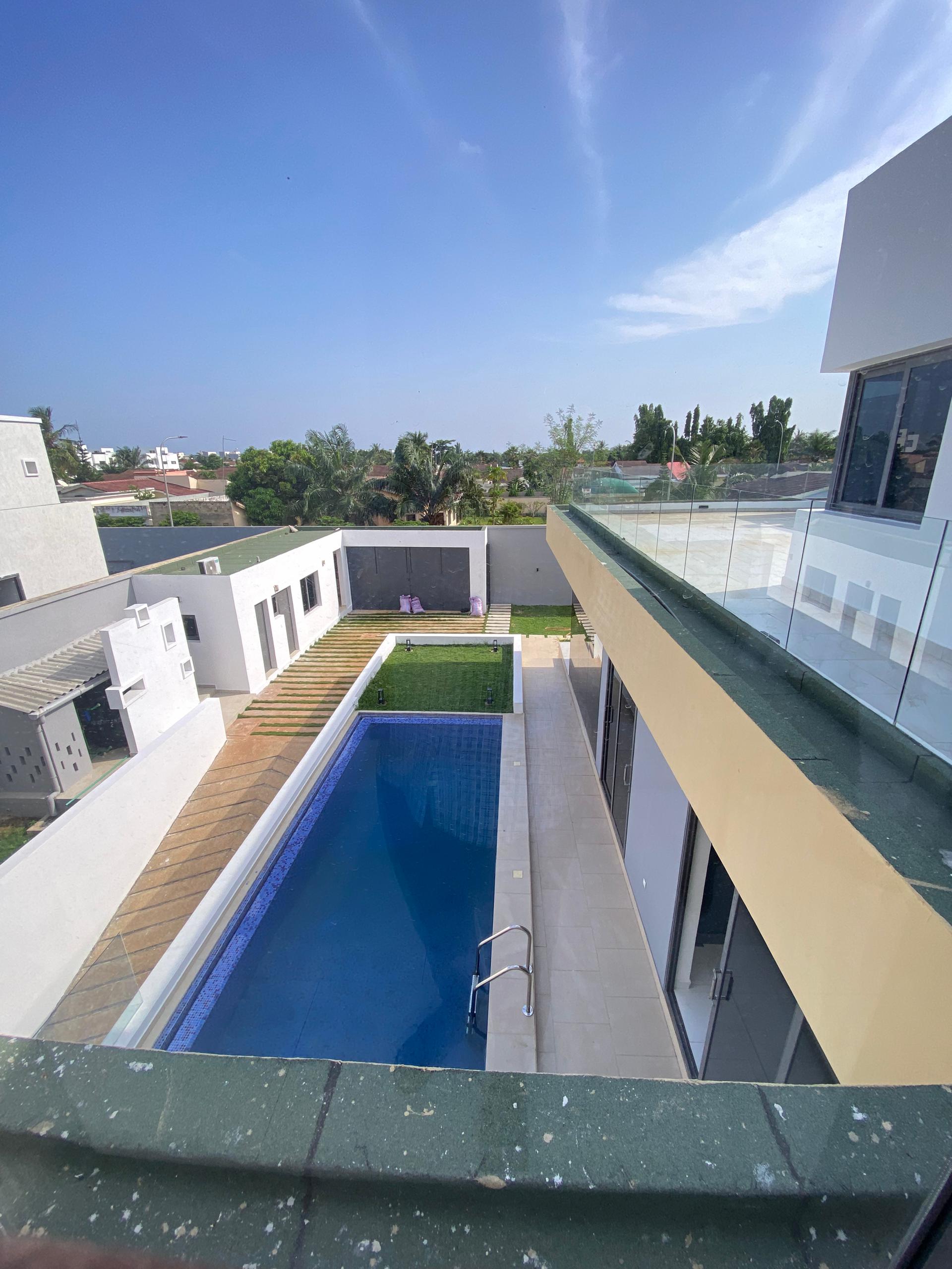 --4 chambres avec sanitaires internes ... un grand salon ..une cuisine ... une boyérie ... wc visiteurs ... une piscine ... un jardin ... une terrasse .. un garage souterain... et en plus quelques chambres souteraines....