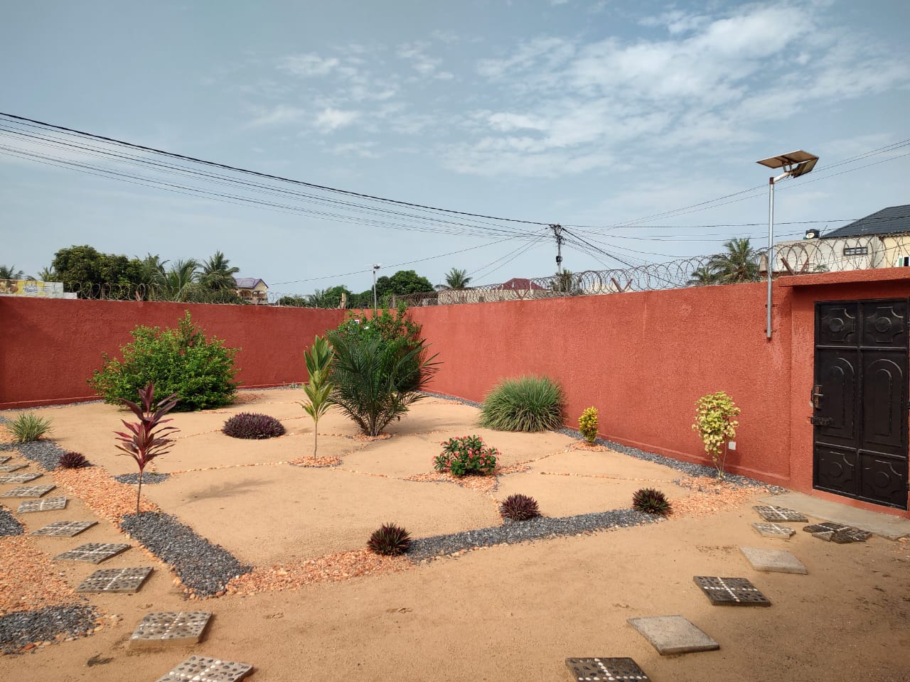 --2 chambres climatisées.. avec leurs sanitaires internes et chauffe-eau ... un salon ventilé .. une cuisine ..une terrasse ... un wc visiteurs ... un garage dallé pour 2 voitures ... une grande cour ...