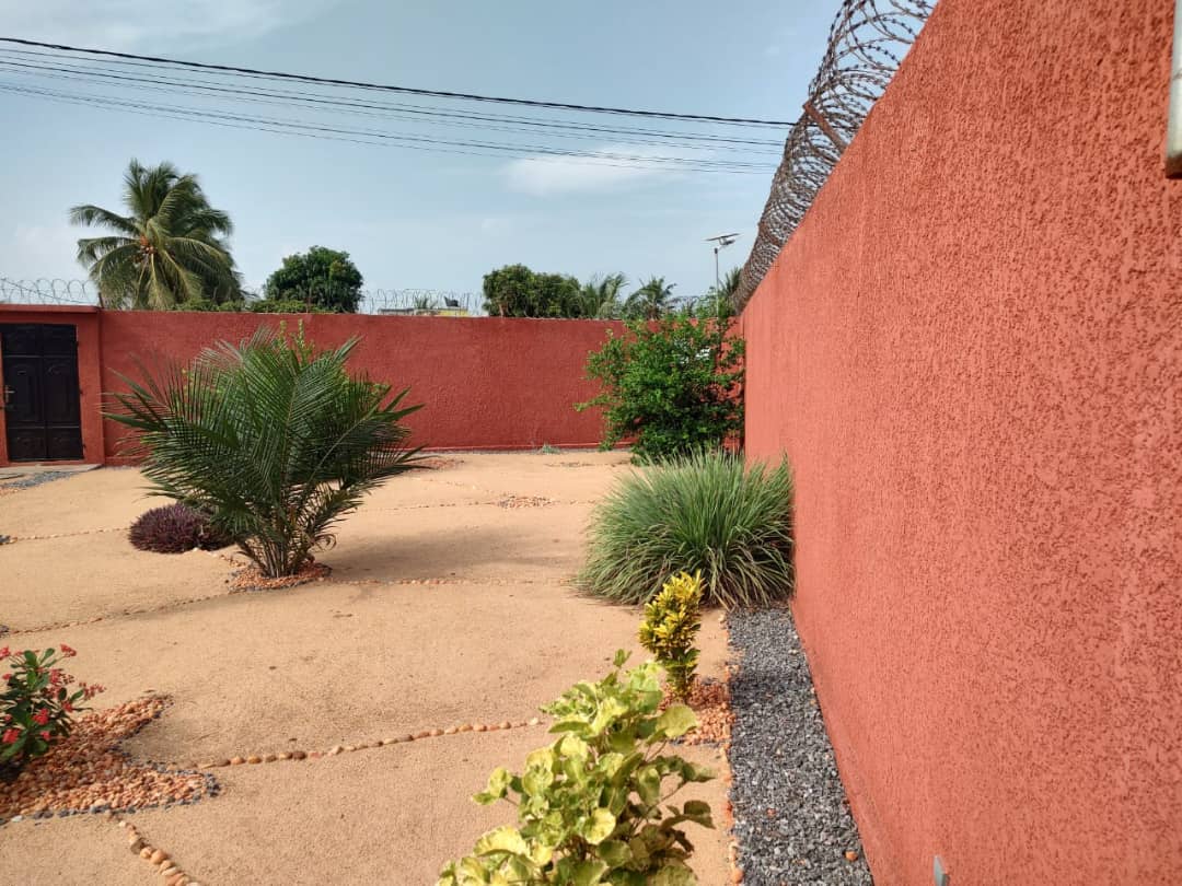 CaisseVilla construite sur terrain 3/4 de lot avec titre foncier en cours .... bien située en angle de rue à kpogan zogbédji, non loin du marché sur la grande voie et composée de :::