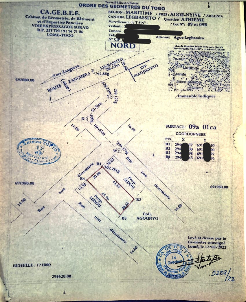 Baguida-AfanoukopéTerrain 1 lot et démi cloturé ( soit 901m2 ) avec titre foncier en cours + tampon OTR +Acte notarié.. ... bien situé jusre derrière EPP Madjikpéto, non loin du goudron et comportant une construction de 4 X chambres salon..