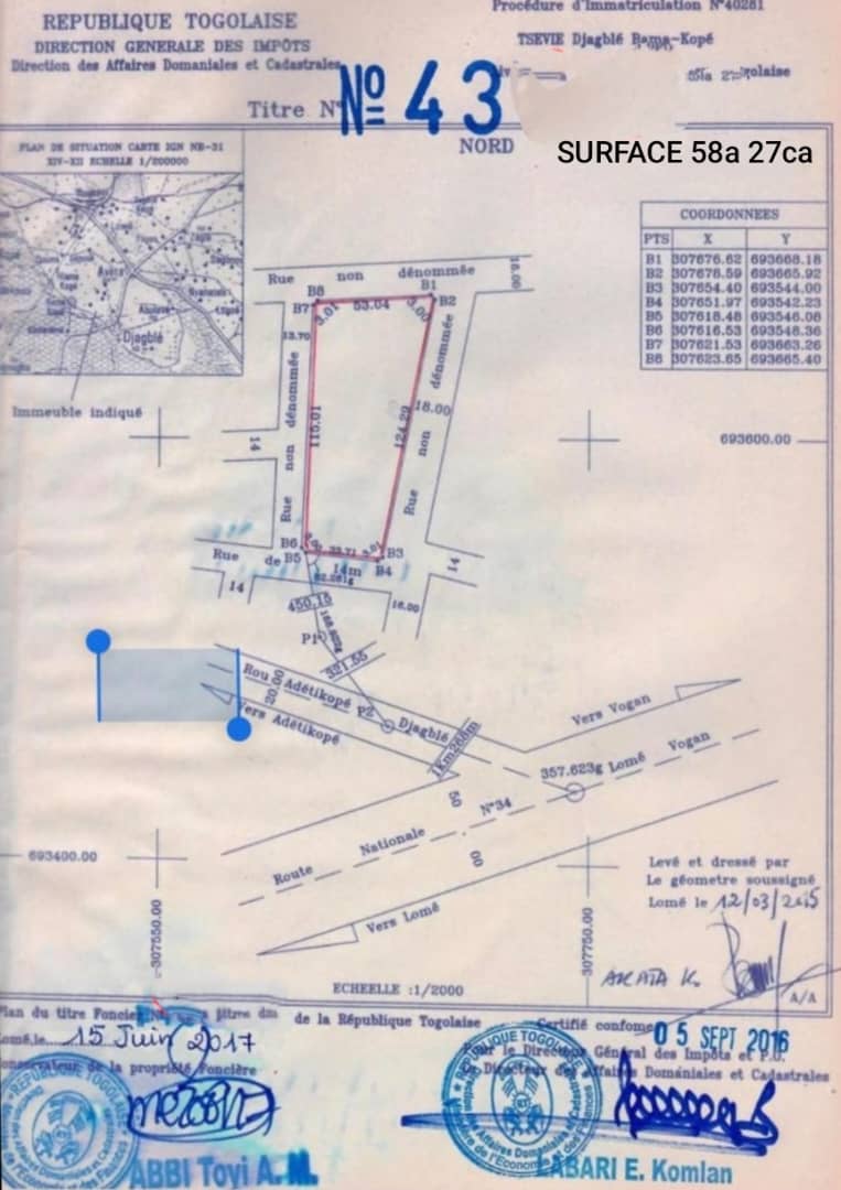 Baguida-AfanoukopéTerrain 9 lots collés avec titre foncier ... très bien situés en plein centre de Djagblé Ghamakopé en angle de rue... un bon emplacement pour tout projet ...