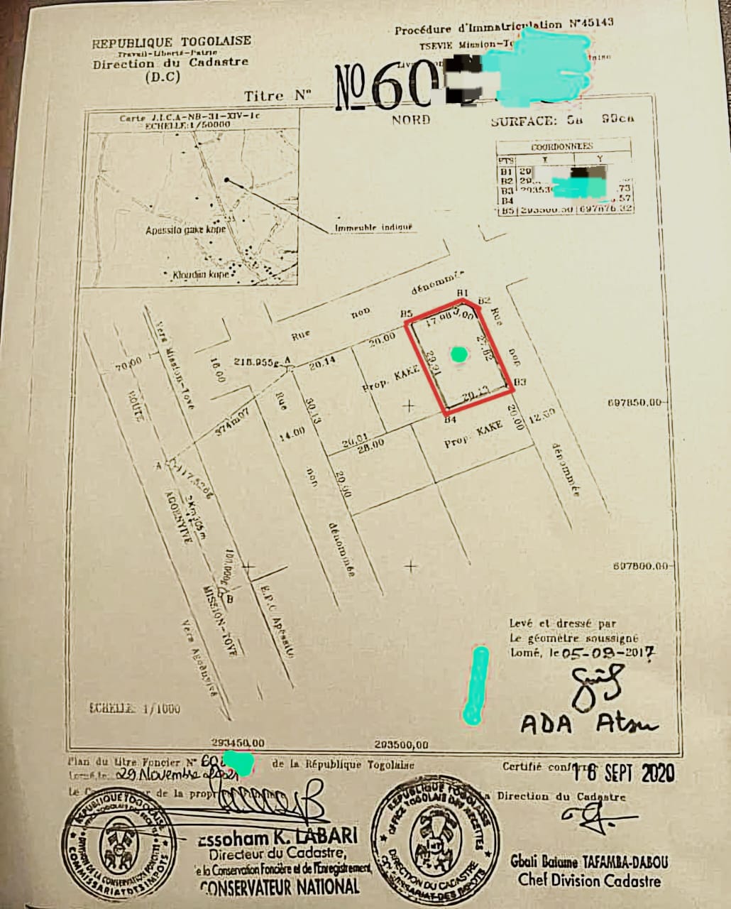 Baguida-AfanoukopéTerrain 1 lot avec titre foncier .... Très bien situé en angle de rue dans le quartier la Paix , à proximité du Complexe Scolaire Madeline et à 400m de la grande voie D'Apéssito dans un cadre très agréable et facile d'accès...
