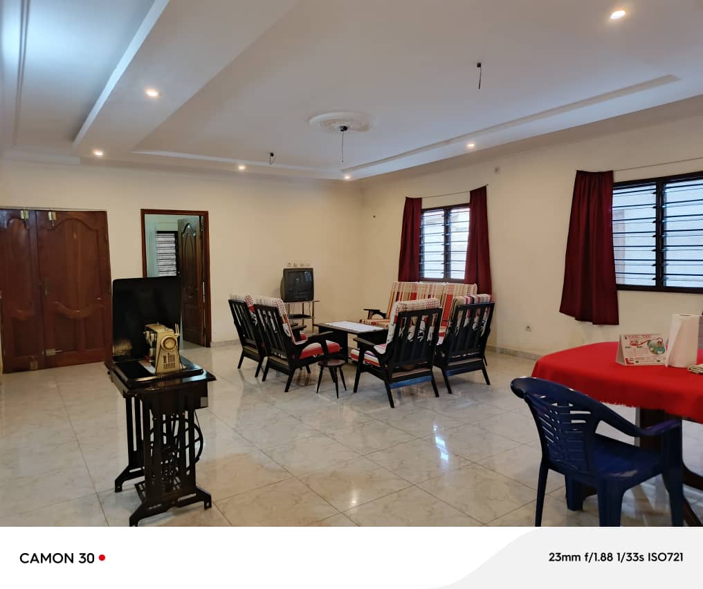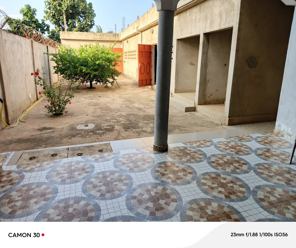 --- Un grand salon bien staffé avec des jeux de lumière... une cuisine ... une terrasse .. 3 Grandes chambres dont une avec sanitaire interne et les deux autres avec un sanitaire commun.... un wc visiteurs .. 2 dépendances avec sanitaires externes.. 2 Boutiques .. un grand garage pour 3 voitures ... une cour avant et arrière ...