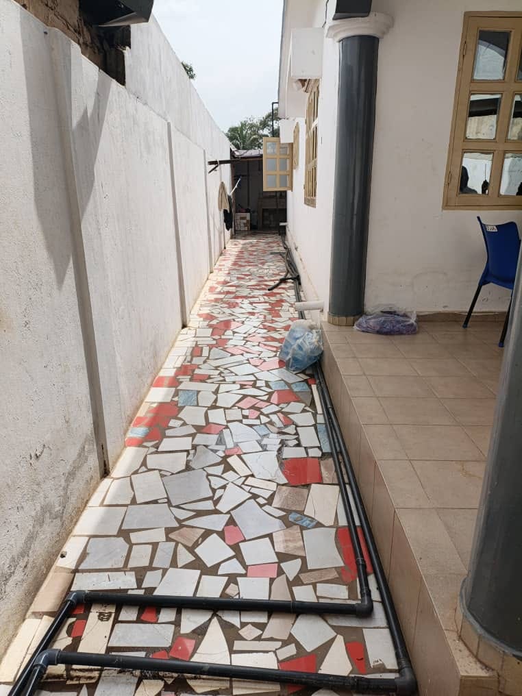 CaisseVilla construite sur terrain 1 lot avec titre foncier scindée en deux cours bien aérée et tres bien située avec une vue directe sur l'échangeur à Agoè fil o park non loin de la station s'essence Sanol à 100m du goudron.... et composée de :::