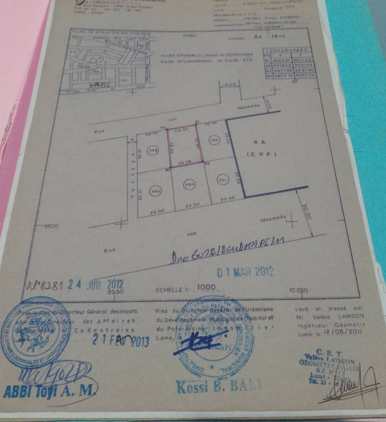 Baguida-AfanoukopéTerrain 1 lot ( soit 600m2 ) avec 2 tampons .... Tres bien situé en plein centre ville juste dérrière le célèbre Monument de Baguida non loin de la plage ... et tout proche de EPP ...( école primaire publique )