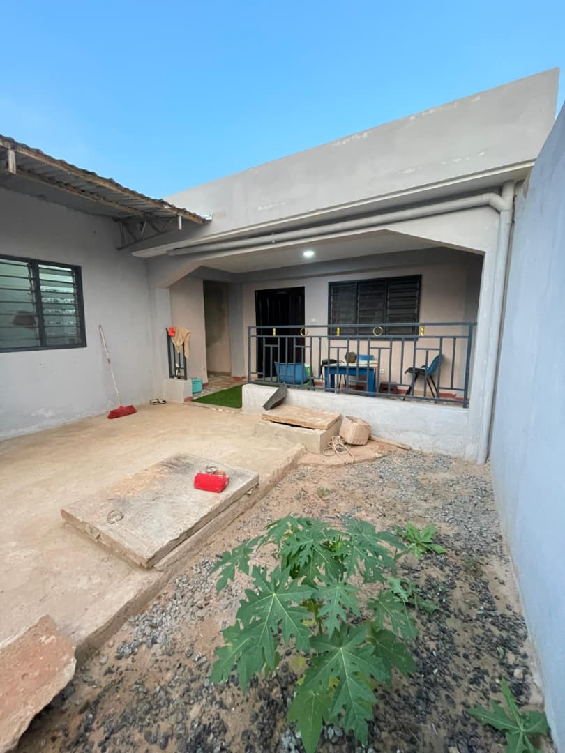 --Une grande chambre salon wc douche interne avec terrasse bien propre, carrélé, tuilé, plafonnné...une grande cuisine. 2 dépendances bien carrélés tuilées et plafonnées avec wc douche externe ...Une Boutique dallée ... un garage pour une voiture ... Eau forage et cash power disponibles ..