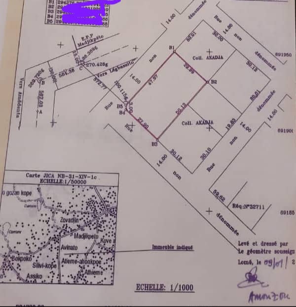 ANEHO-HABITATTerrain 2 lots et démi collés ( 15a 01ca ) cloturé avec titre foncier ...Situés en pleine habitation entre Madjikpéto et Atiwomé à 50m de la voie Légbassito--Zanguéra ...à 800m du goudron ... en angle de rue ...