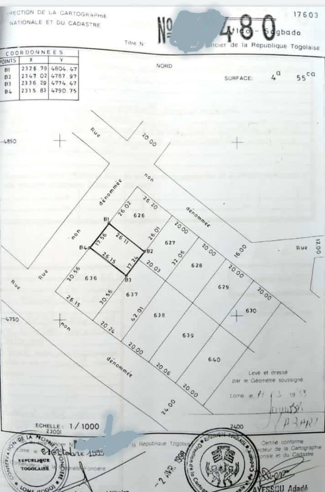 Terrain 3/4 de lot avec titre foncier ....Très bien situé en Face du Marché Assiyéyé à adidogomé