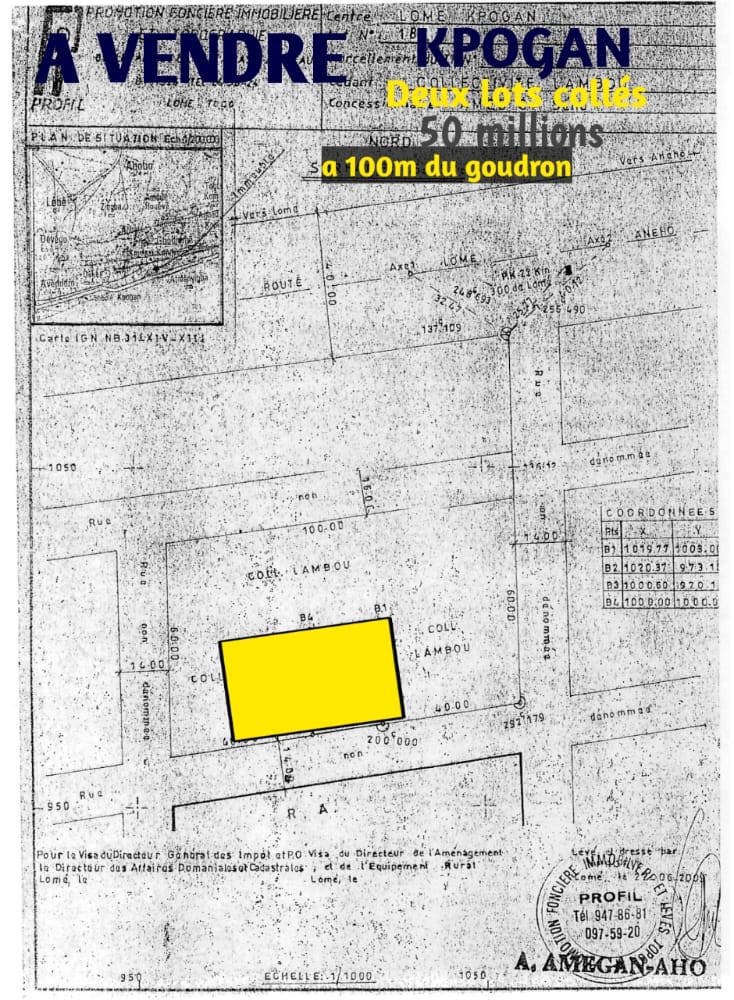 ANEHO-HABITATTerrain 2 lots collés avec titre foncier ... Situés en angle de rue , coté de la mer , proche du Goudron et de la station SOMAYAF ... et tout proche aussi de TOLBERO BEACH ....