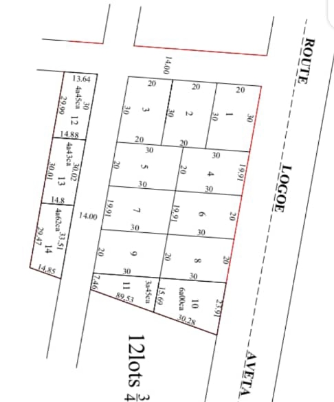 ANEHO-HABITATTerrain 12 lots collés avec plan simple + Nouveau tampon OTR en cours .... Situés en Bordure de la grande voie du Contournement à 3km de la nationale numéro 1 ...