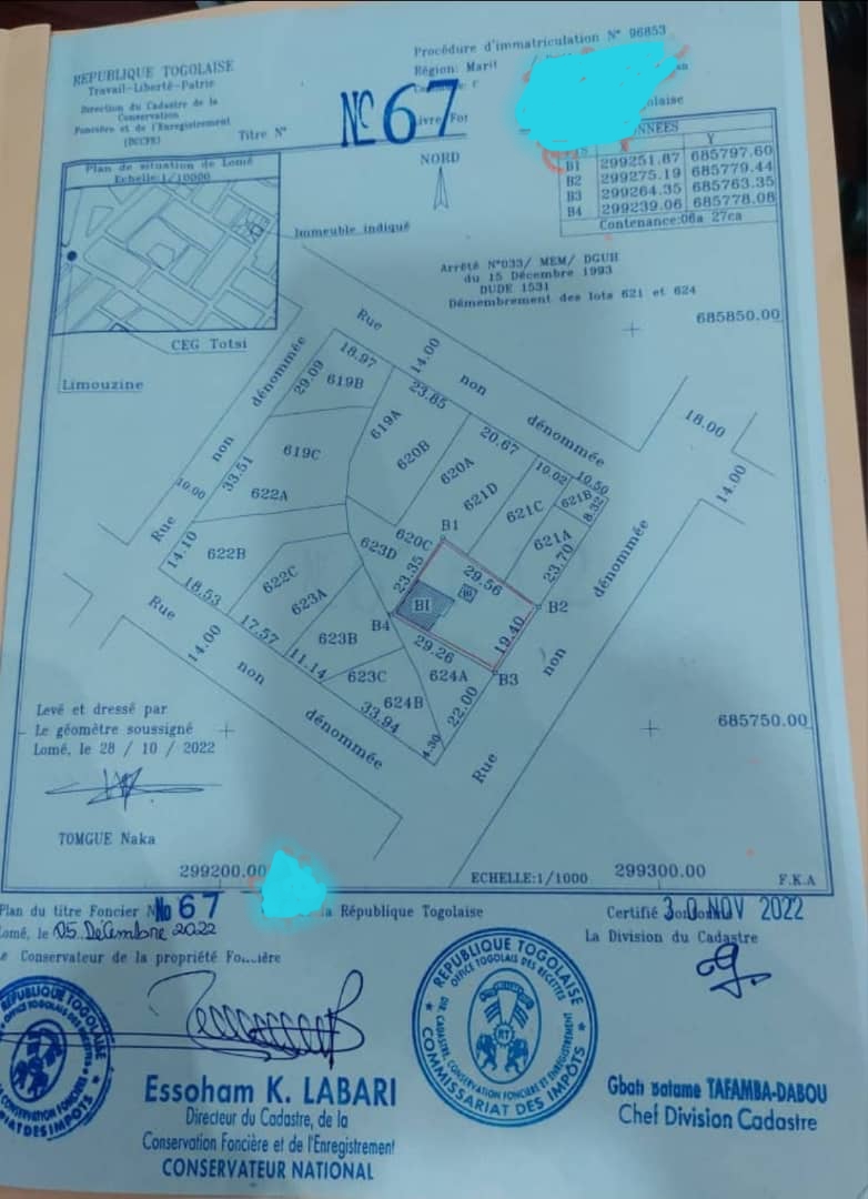 ANEHO-HABITATTerrain 1 lot ( 6a 27ca ) avec titre foncier ... Très bien situé en plein centre de Totsi ...Comportant une construction inachévée de 2 chambres salon.... à 350m du goudron ...