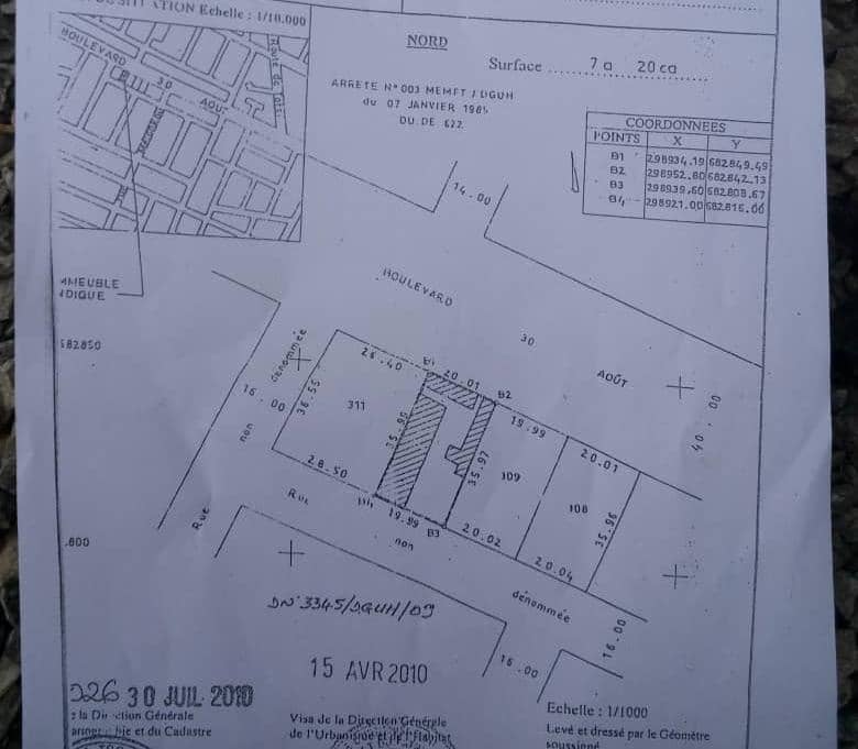 ANEHO-HABITATTerrain 1 lot 1/4 cloturé ( soit 7a 20ca ) avec 3 tampons ... très bien situé en bordure du goudron .. Comportant 1 chambre salon avec 3 boutiques...