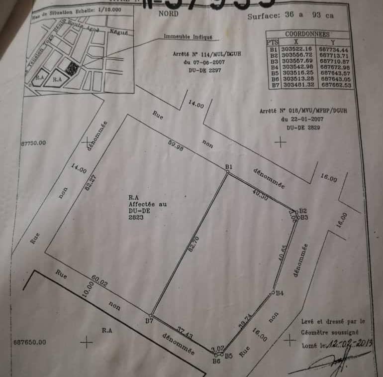 ANEHO-HABITATTerrain Stratégique de 6 lots collés avec titre foncier... Très bien situés à 150m de la nouvelle route en construction juste derriere les soeurs Marianiste .... avec une ouverture sur 3 différentes voies ..... idéal pour toutes activités commerciales et autres ...