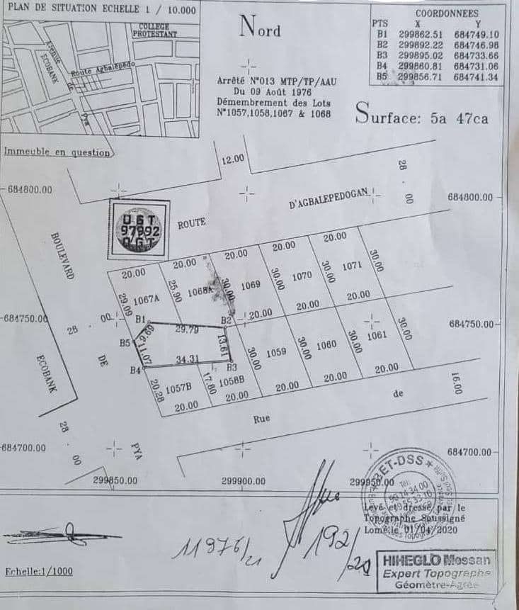 ANEHO-HABITATTerrain stratégique d'un lot ( 5a 47ca ) avec plan simple + mandat notarié...Très bien situé en bordure des pavés quittant djidjolé pour totsi Total ... Comportant une vieille construction à démolir ... non loin de la pharmacie Nation ... bon pour tous projets commercials ....