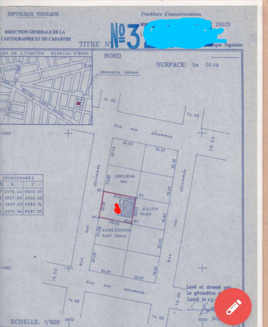 Terrain 1 lot avec titre foncier.. très bien situé à coté de Toyota Bar à environ 300m du goudron
