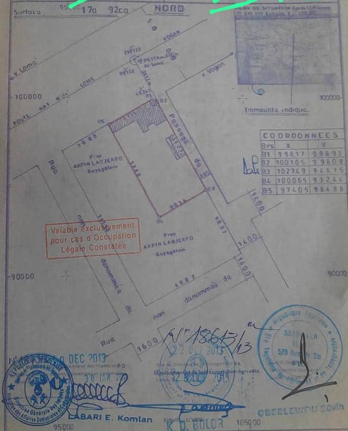 ANEHO-HABITATTerrain Stratégique de 2 lots collés cloturés avec 3 tampons ... Très bien situés en Bordure du Goudron ...juste à 100m dfu péage sur la route de Djagblé à YOGON ....