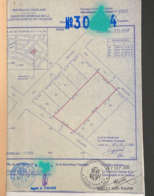 Terrain 6 lots 1/4 collés avec titre foncier ... sur deux voies très bien situés au centre de wognomé ...