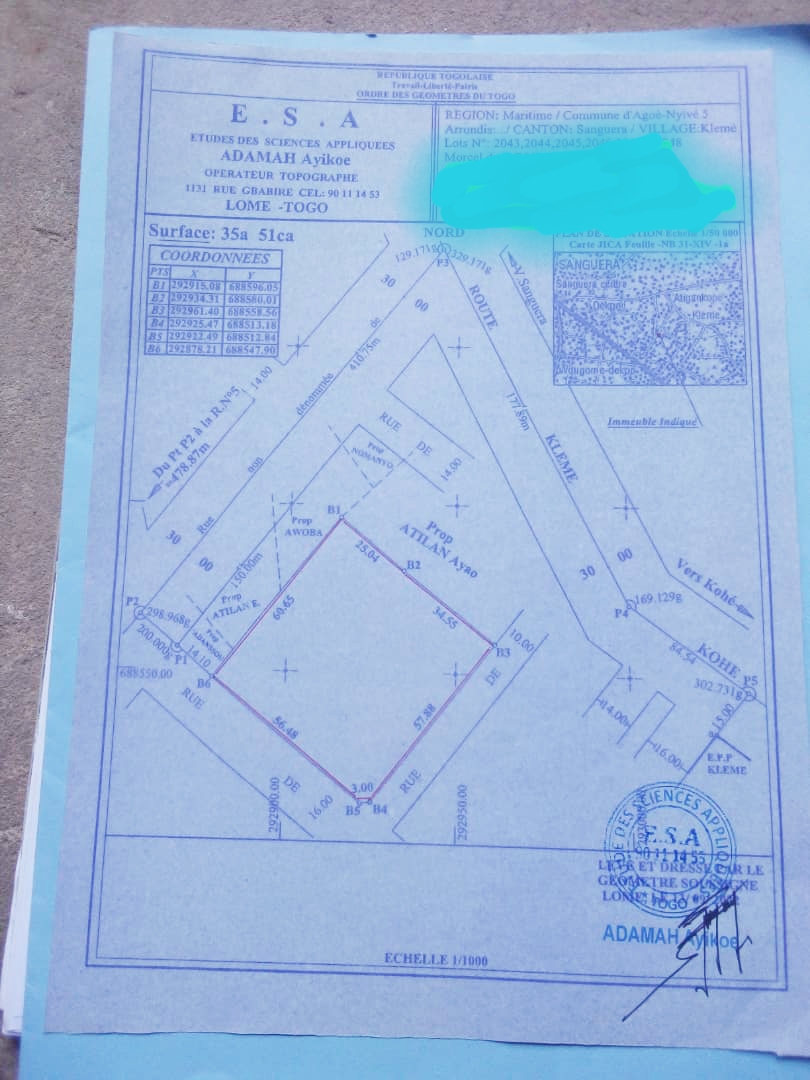 ANEHO-HABITATTerrain 6 lots collés avec 1 nouveau tampon OTR ...et titre foncier en cours situés à 500m du goudron..... et ouvert sur 3 différentes voies ...