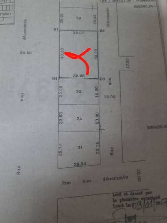 ANEHO-HABITATTerrain 2 lots collés avec titre foncier ... très bien situés non loin de la maison de Kpatcha ...sur 2 différentes voies dont une grande de 50m en plein centre de kégué ...