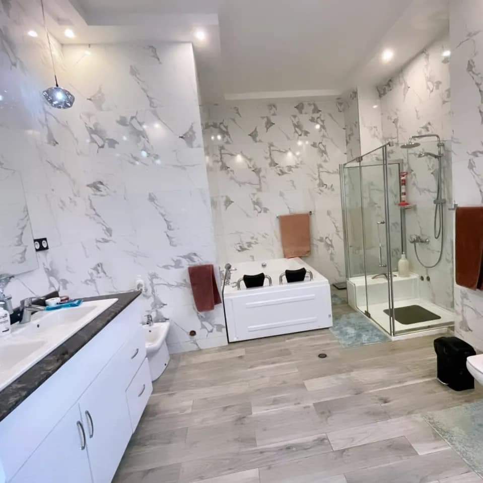 Superbe villa duplex nouvelle construction sur terrain 3/4 de lot ( 450m2 ) avec titre foncier ... bien située tout proche de l'hotel 02 ... en plein centre de Zanguéra... tout meublé.