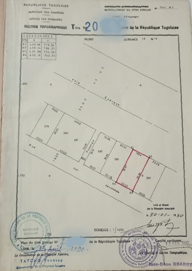 ANEHO-HABITATTerrain Stratégique de 1 lot 1/4 ( 796m2 ) cloturé avec titre foncier ... Très bien situé en bordure du goudron de L'échangeur de Kégué .... sur 2 voies dévant et derrière...