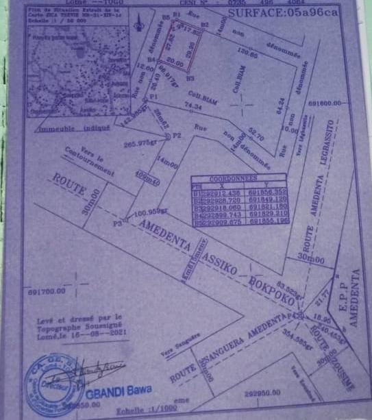 ANEHO-HABITATTerrain 1 lot avec un nouveau tampon OTR ... Très bien situé à légbassito-bokpokpo à 900m du grand contournement... bon emplacement pour une habitation ...