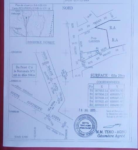 ANEHO-HABITATTerrain démi lot ( 329m2 ) avec 1 nouveau tampon OTR .... situé dans un quartier bien habité à 900m de la nouvelle voie en chantier ... sur angle de rue