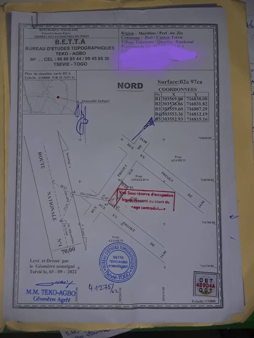 Terrain démi lot avec 1 nouveau tampon OTR avis Favorable .. situé tout proche de la Préfecture..... en Angle de rue