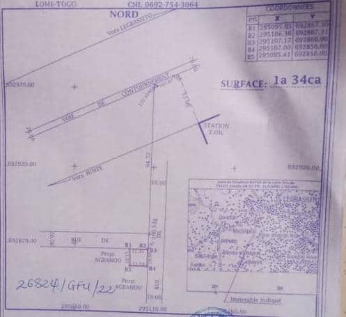 ANEHO-HABITATTerrain 1/4 de lot cloturé avec 1 nouveau tampon OTR ... bien situé en angle de rue à 80m du goudron du Contournement juste à coté de la station service T-OIL ....comportant une construction de 2 X chambre salon et une piece ...