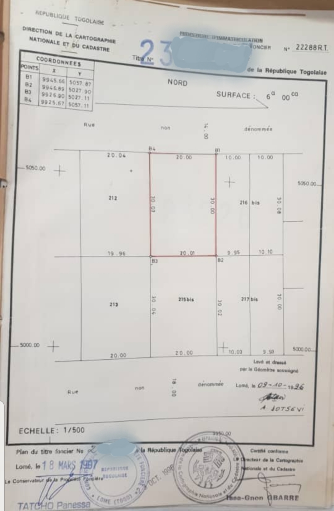 Terrain 1 lot cloturé avec titre foncier ..... très bien situé tout proche de l'église Catholique à 150m du goudron ...