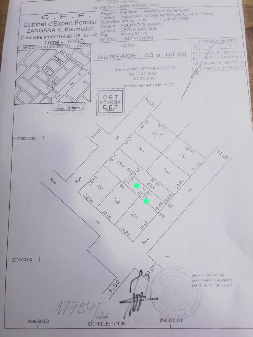 ANEHO-HABITATTerrain démi lot ( 363m2 ) avec 1 nouveau tampon OTR à déduire d'un lot cloturé ... bien situé tout proche du Carrefour COMMANDO et CCL à 150m du Goudron du Contournement .....