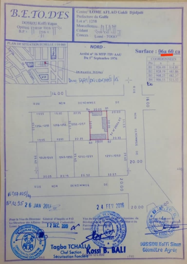 Terrain 1 lot avec 3 tampons ... très bien situé en Bordure du nouveau goudron à djidjolé juste derrière le Cours Primaire ....