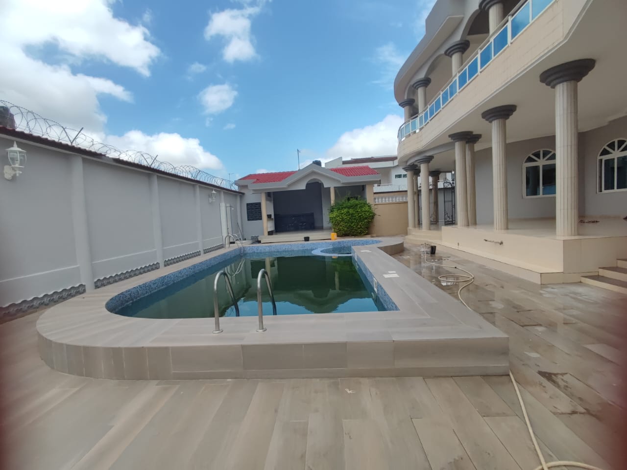 2 grandes chambres autonomes avec dressings ... une grande cuisine équipée ...2 grands salons avec salles à manger ...un séjour ..2 escaliers internes ..un grand jardin vert ...une grande piscine ...un parking pour 8 voitures ...