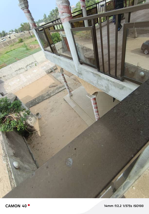 Grande villa duplex construite sur terrain 1 lot ( 600m2 ) avec 3 tampons .. bien située en plein centre ville à gbodjomé , non loin de NOVICAT et composée de :::
