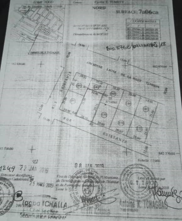 ANEHO-HABITATTerrain 1 lot 1/4 avec 3 tampons ( soit 706m2 ) très bien situé en plein centre ville à Avénou à 150m des pavés de Kouvahey et derrière le restaurant Factory. non loin du collège Descartes ...