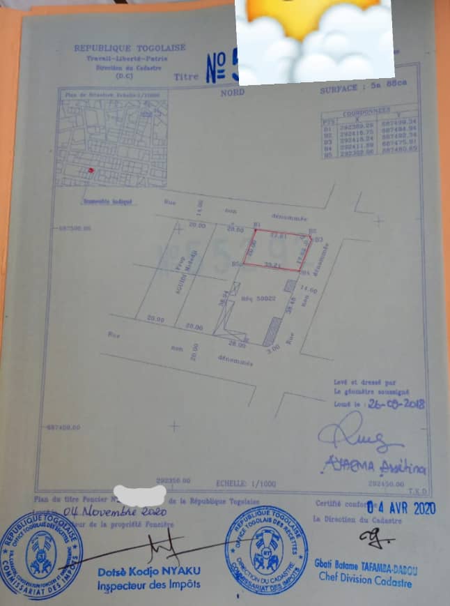 Terrain 1 lot avec titre foncier ... bien situé en angle de rue juste derrière la maison Blanche ...