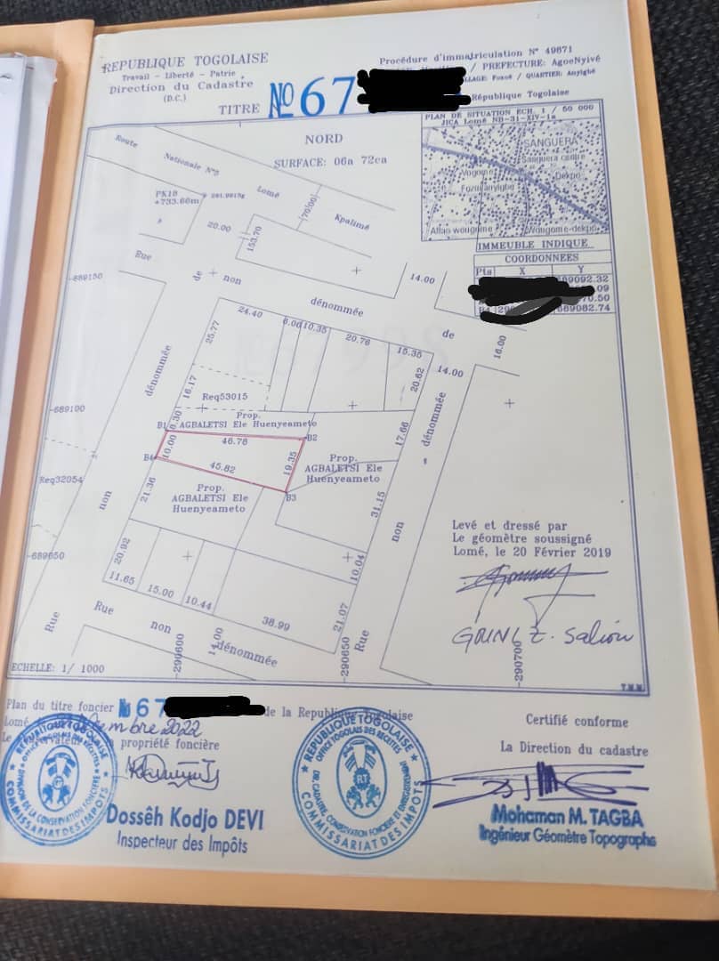 Terrain 1 lot cloturé avec titre foncier ( soit 672m2 ) .... tres bien situé à 200m du goudron au niveau du cafétaria DIALLO.....