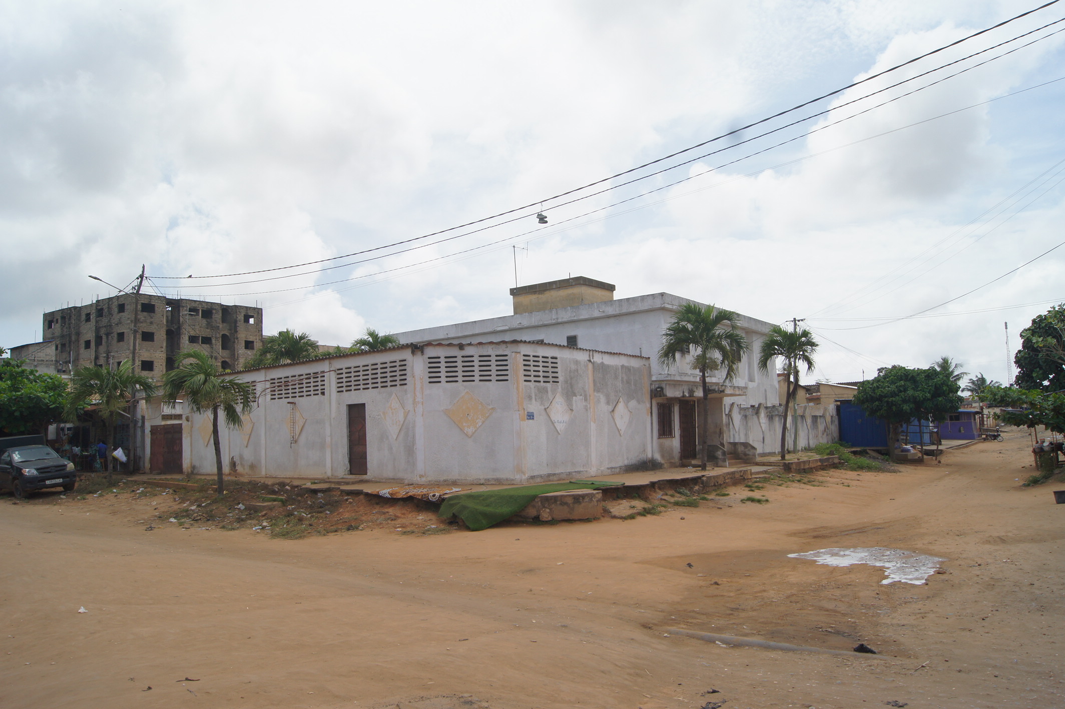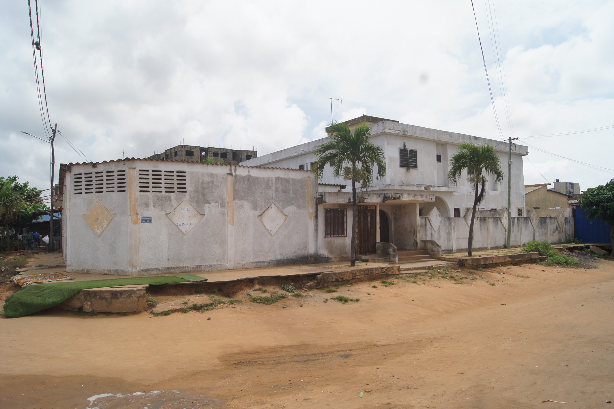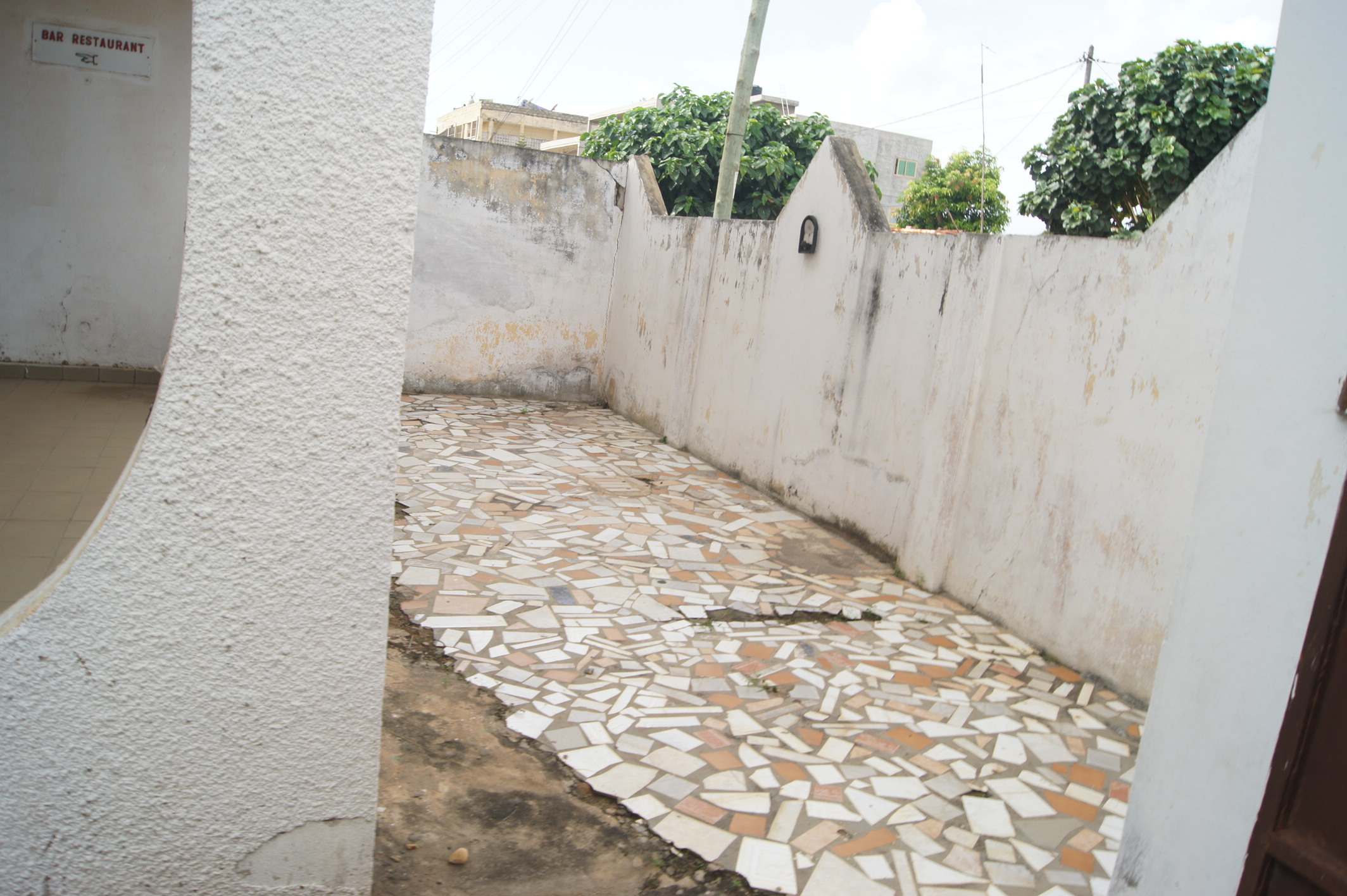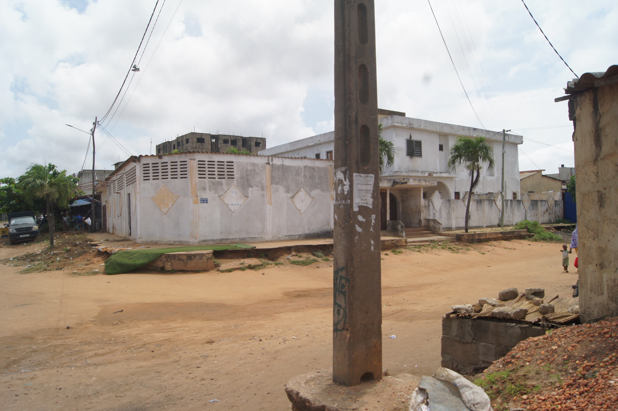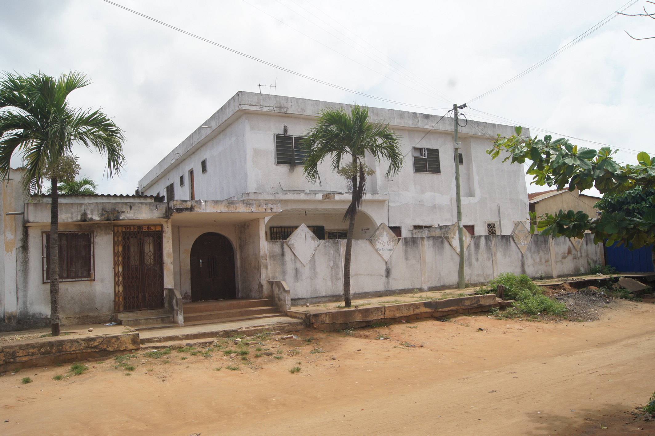 --13 chambres wc douche interne chacune .... 2 grands bureaux ( salon ) une cuisine ... une buandérie ... un magasin ... un Bar interne ... une salle de réception... une cabine interne .. une toilette visiteurs ... une grande cour ( place des fètes ) ... un Bar public ... une piste de dance ...et une cabine ... garage pour 2 voitures... ( à Rénover complètément )