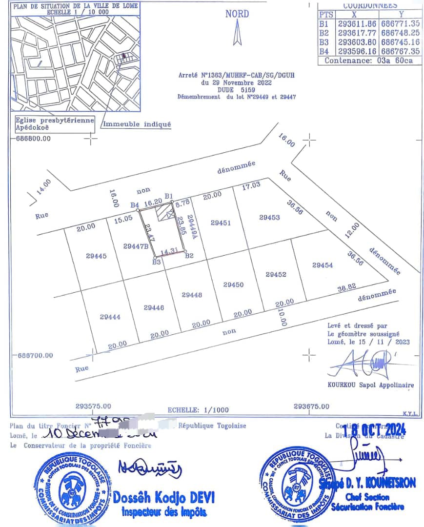 ANEHO-HABITATTerrain démi lot cloturé avec titre foncier... tres bien situé non loin de la base Ebomaf à 100m du goudron avec accès direct...