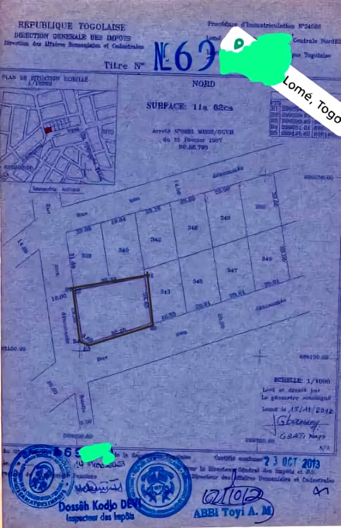 ANEHO-HABITATTerrain 2 lots collés avec titre foncier ... Tres bien situés en plein centre ville en Bordure du goudron dt tronçon Limousine-Hotel Concorde allant vers Carrefour Sanol à Adidoadin...