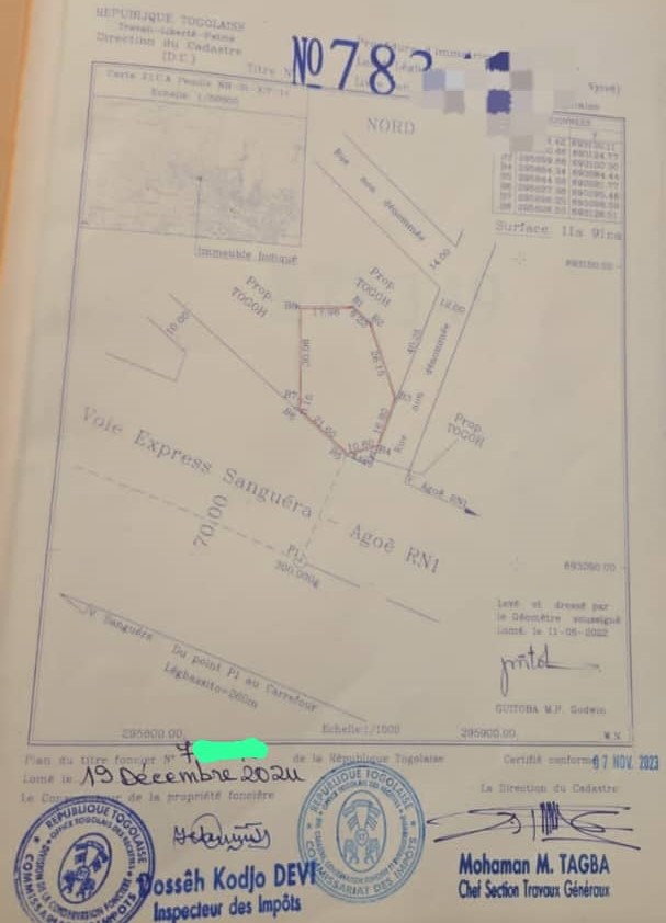 ANEHO-HABITATTerrain 2 lots collés avec titre foncier .... Tres bien situés en angle de rue de forme irrégulière, dans une zone vivante et idéale pour tout type de projet ( habitation, commerce , immeuble, bureaux,...etc.) non loin du marché de légbassito