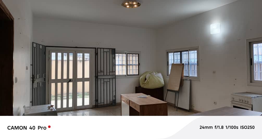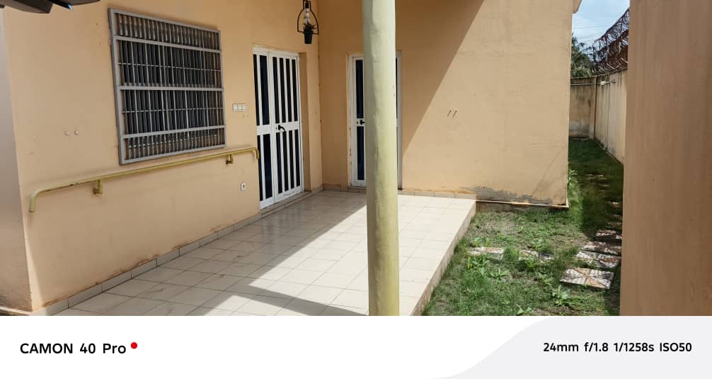 --3 chambres avec sanitaires internes... un grand salon ... une cuisine .. une dépendance avec cuisine africaine... un jardin ... un garage pour 3 voitures..