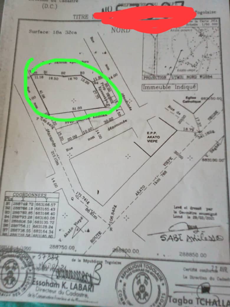 ANEHO-HABITATTerrain 3 lots collés cloturés avec titre foncier .. tres bien situés en angle de rue à 200m du goudron à ségbé akato..